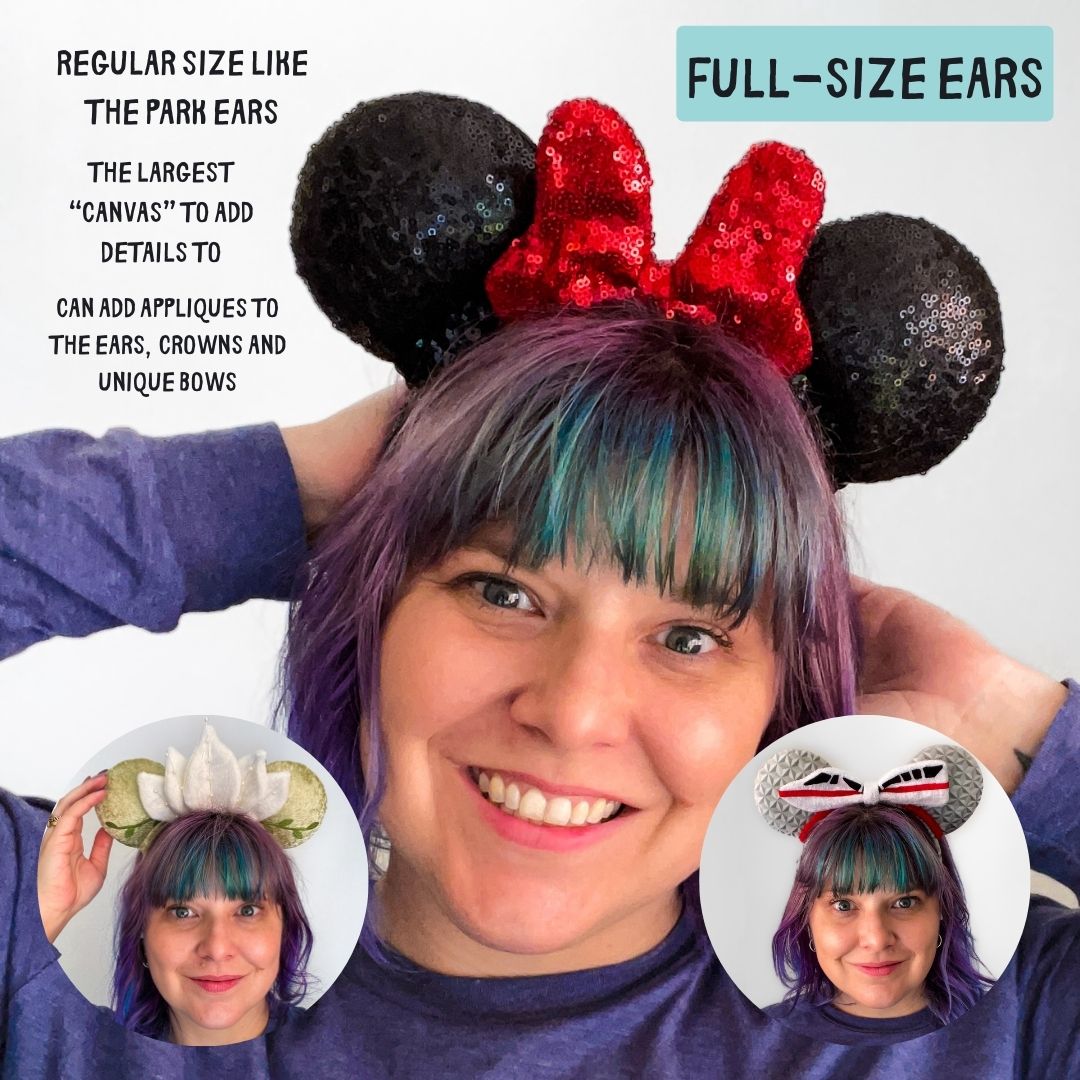 Your custom can be for Full-size Ears, Mini Ears, ScrunchEars, KnotEars, PetitEars, Clip-Ears, Bow Headband (examples in images)
