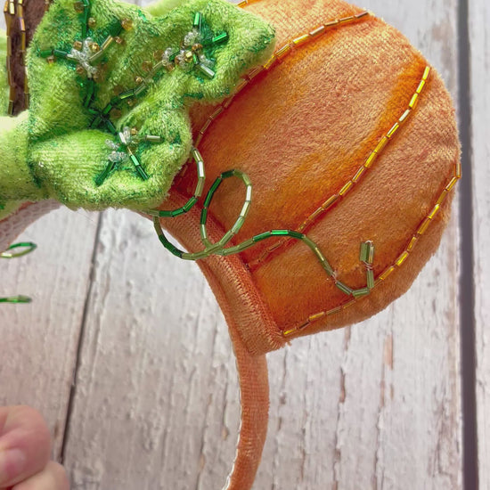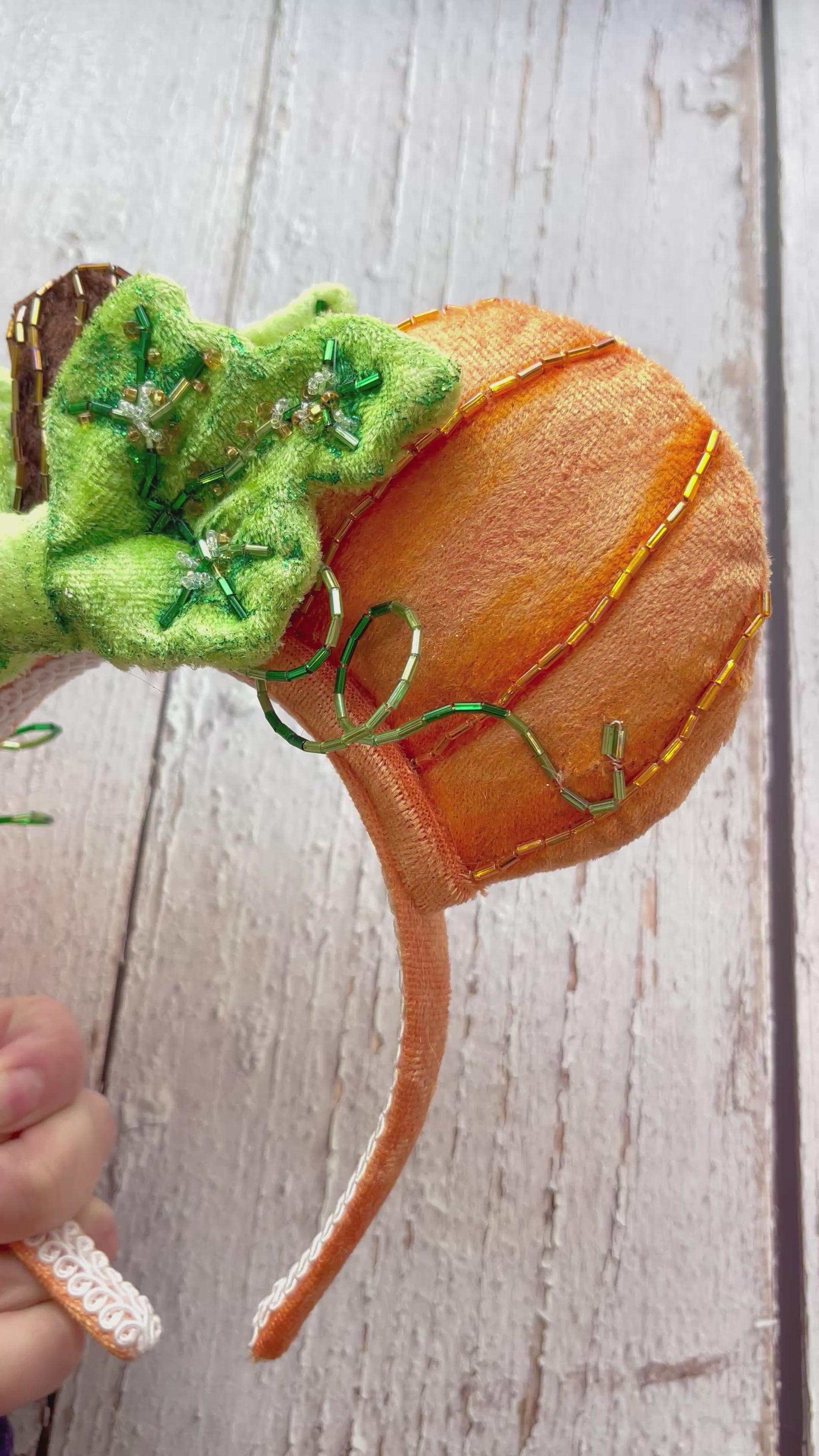 These handmade luxury pumpkin ears are made from hand beaded crushed velvet fabric.