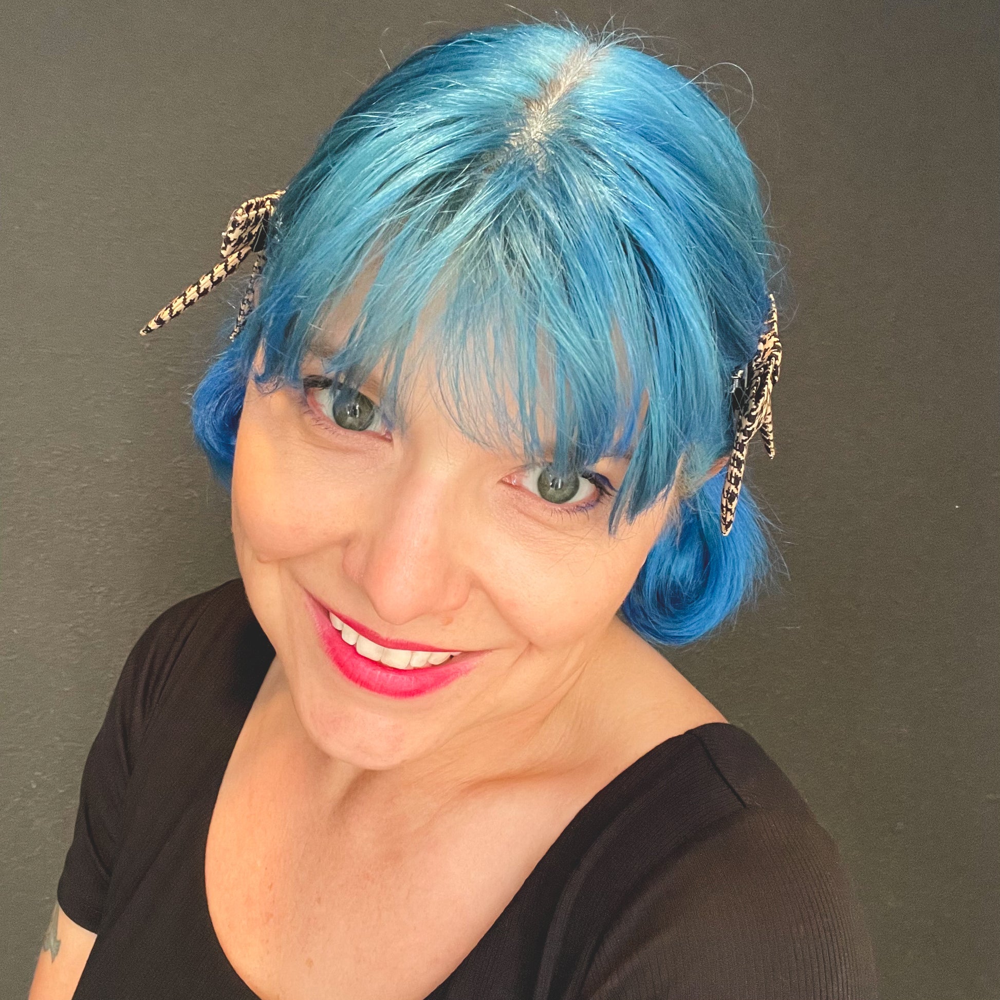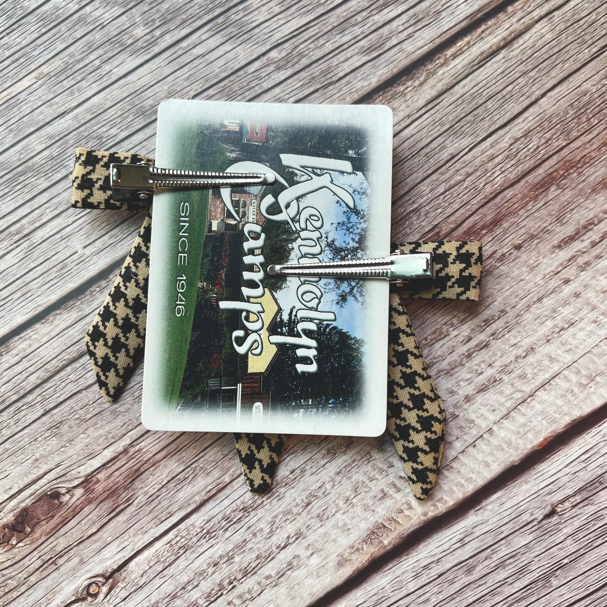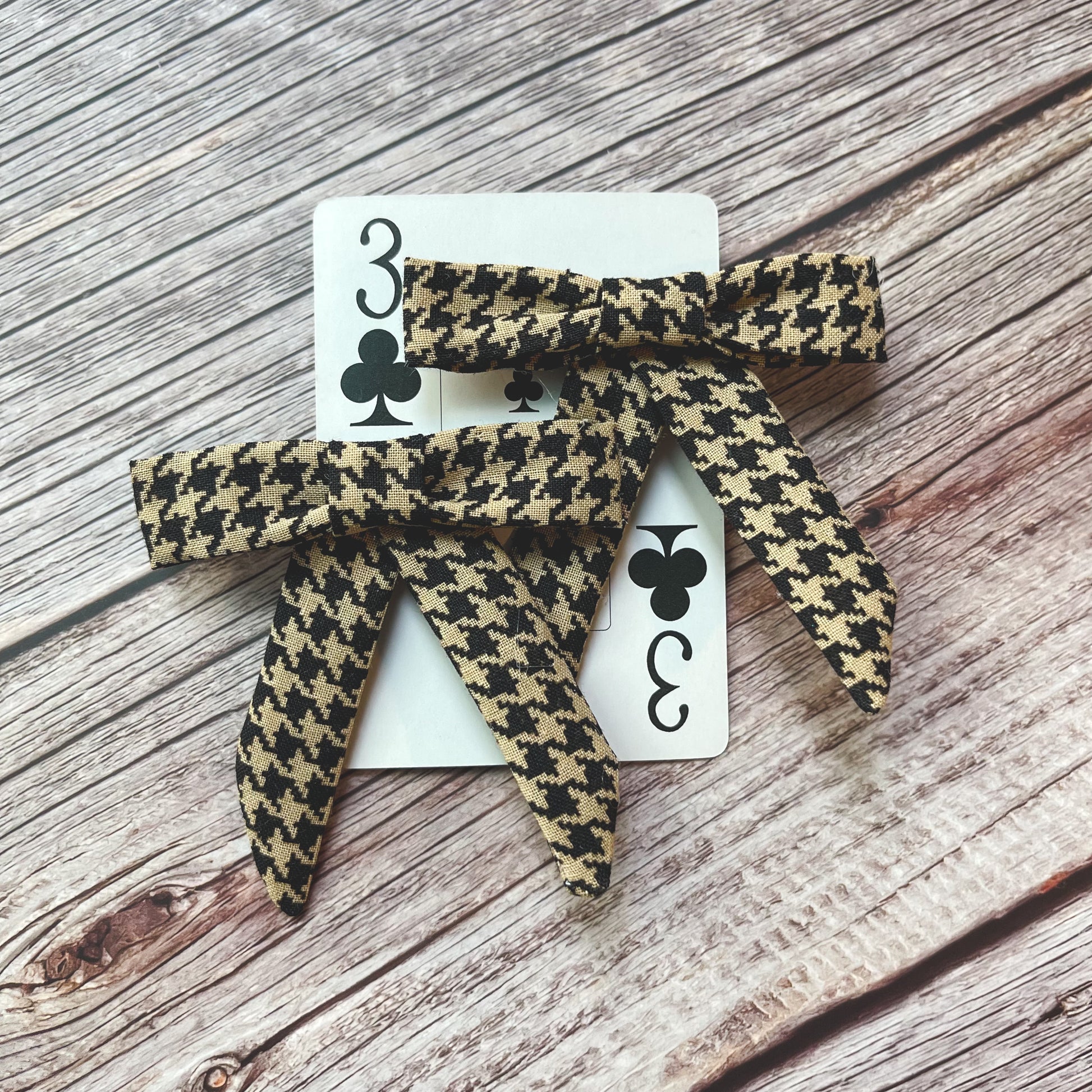 This listing is for a set of 2 clips made from black and tan houndstooth print.