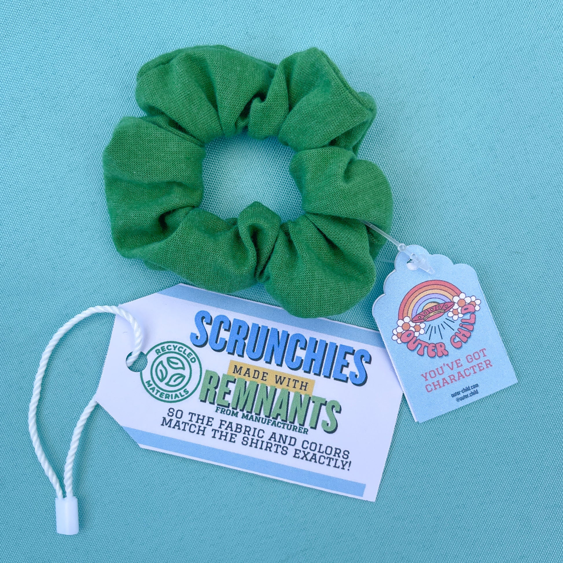 These scrunchies are handmade by Emily from remnants from our manufacturer. That means they are made out of the same fabrics and colors as your You’ve Got Character shirts and will match exactly!