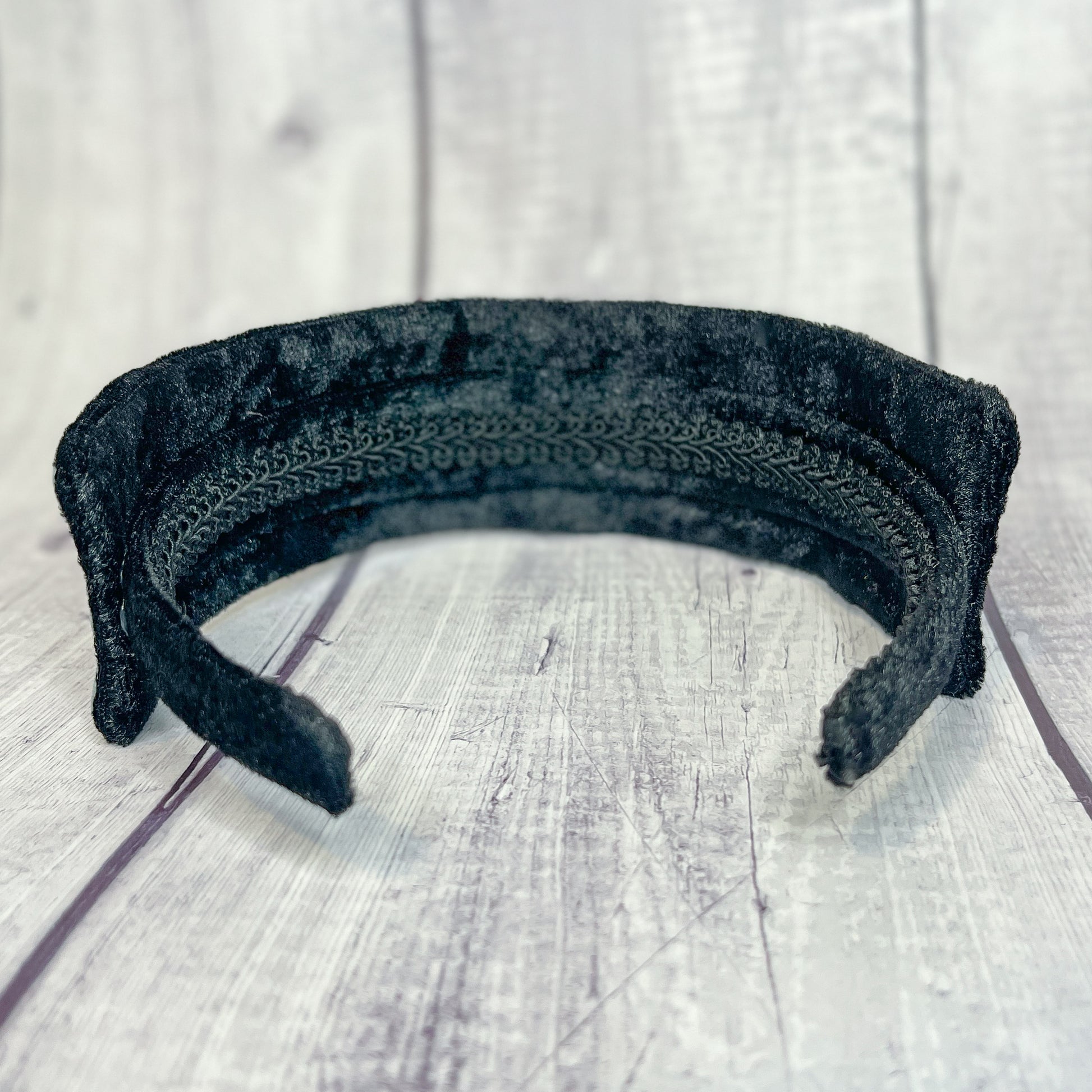 This lightyear tire headband is handmade with plush velvet. It has a tire that circles your head. The tire is attached to a black velvet 1" headband. This headband fits adults and most children 5 and up.