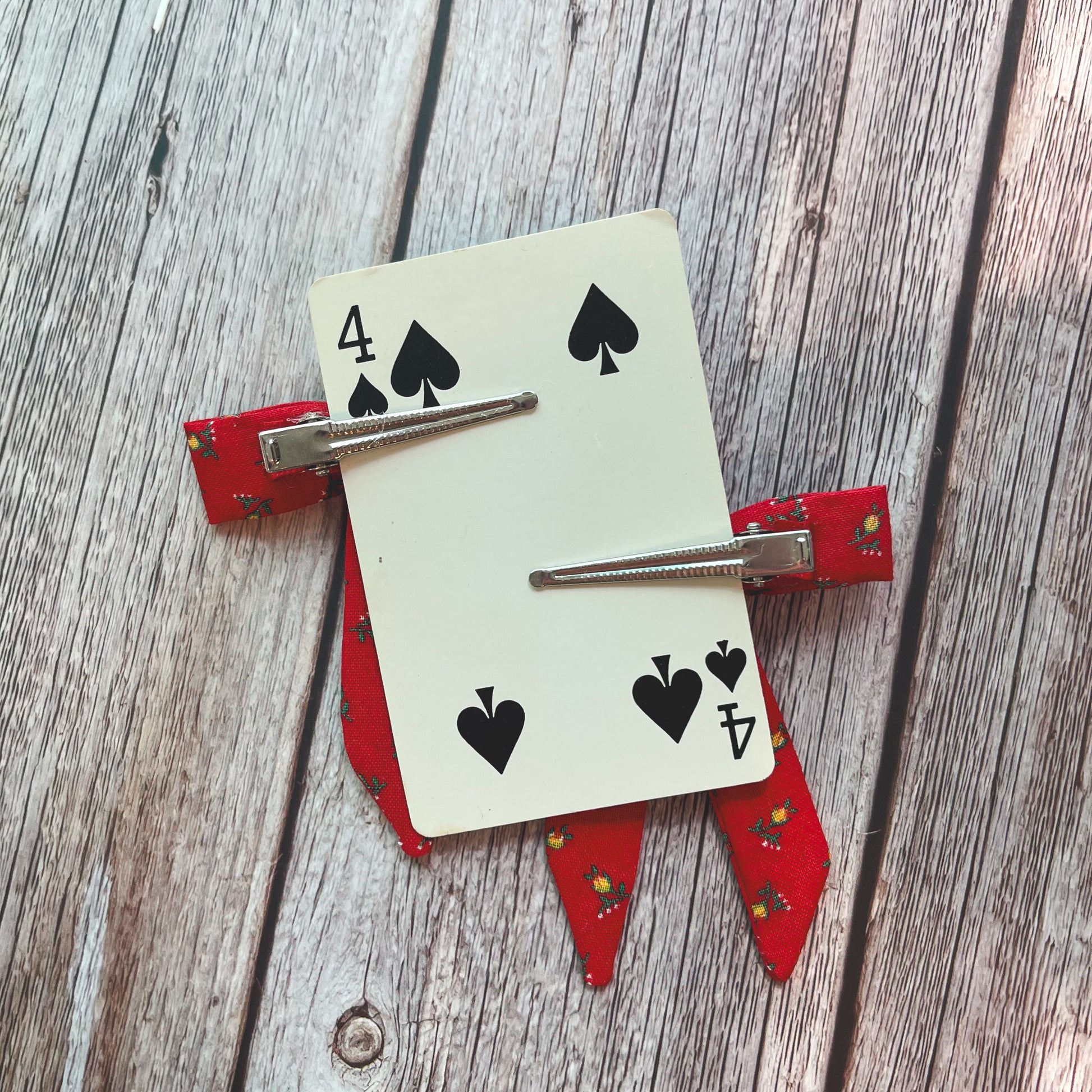 This listing is for a set of 2 clips made from a red cotton with ditsy print of yellow tulips.